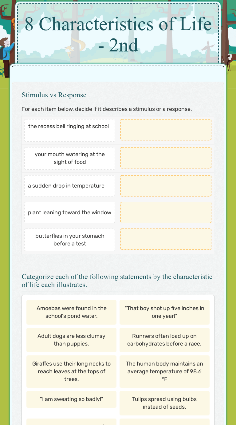 Complete the word web with the 6 characteristics of life. Which organism gets its energy directly from the sun? If playback doesn't begin shortly, try restarting . Anything that possesses all these characteristics of life is known as an organism. 8 key characteristics of living things.